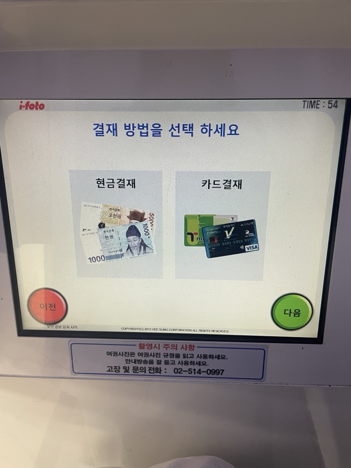 자동사진기 기계마다 현금만 되는 곳도 있고
